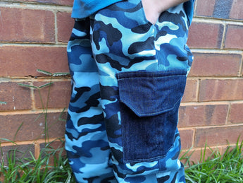 The Collector Cargo Pants pattern is a MUST for anyone who loves a good pocket! Choose between shorts or full length pants, and three different pocket styles. This pattern has a relaxed fit making it perfect for any adventures you have planned. It has a comfortable elastic waist and goes right from 0-3m up to age 12.