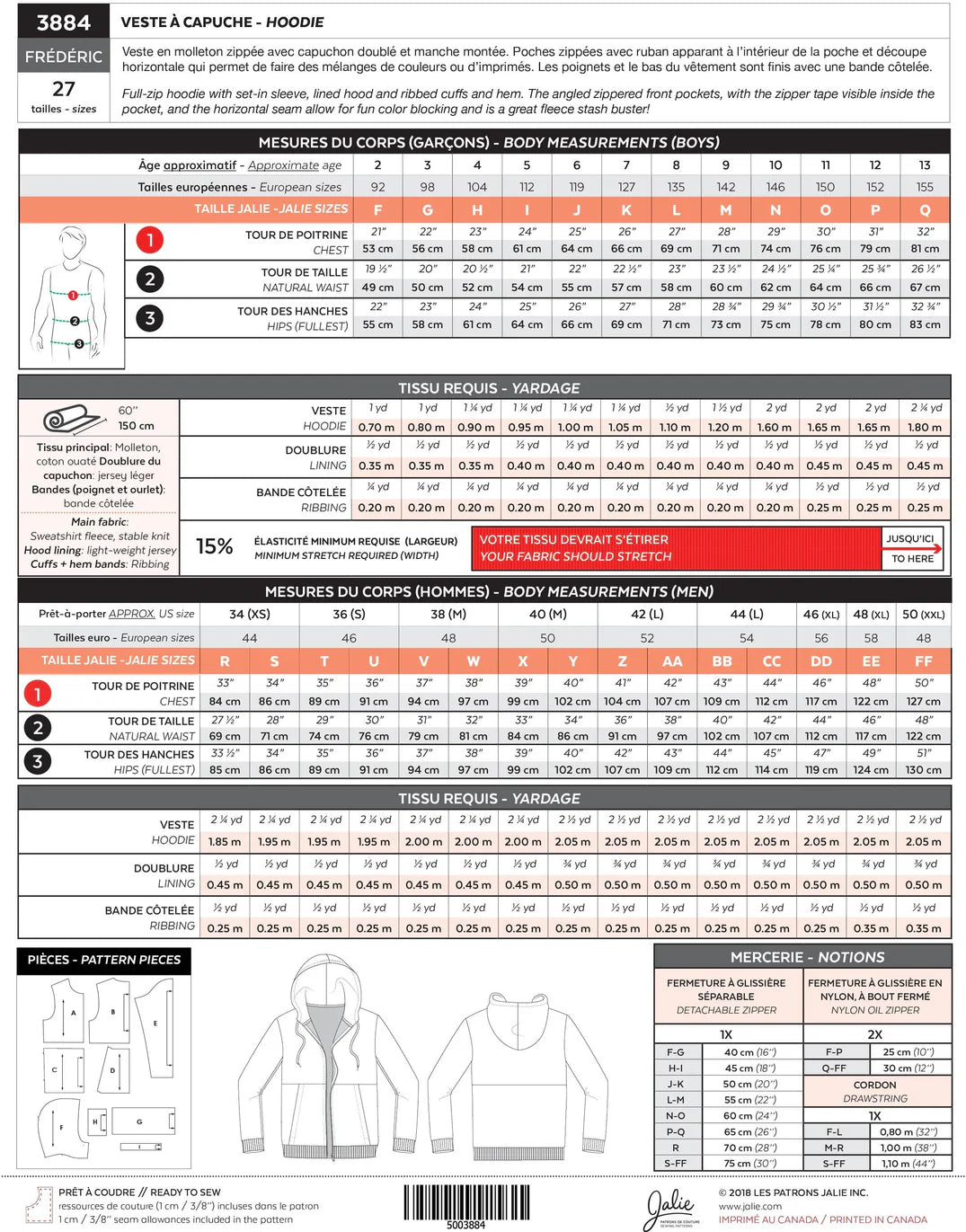 JALIE Frédéric Hoodie Children and Adults Sewing Pattern.