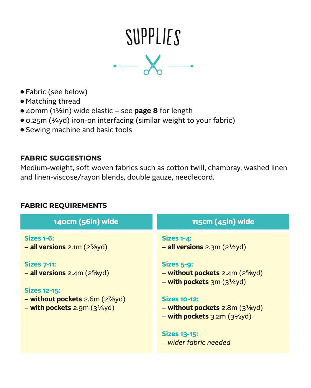 - 0.25m (1/4yd) iron-on interfacing (similar weight to your fabric)