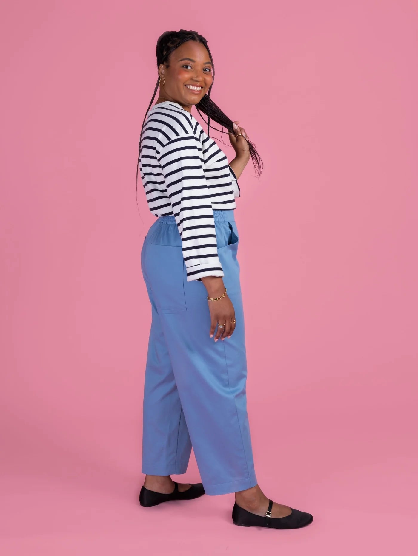 Winnie is the trouser pattern your wardrobe’s been waiting for. With a modern barrel leg shape, high waistline, and no-fuss elasticated waistband, Winnie is perfect for beginners and beyond looking for a simple, satisfying sewing project. Throw in handy pockets and you’ve got a wardrobe staple you’ll wear on repeat.