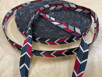 25mm Red and Blue Vintage Chevron Webbing Tape