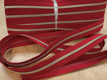 Deep Red with Gold Teeth Continuous Zipper Tape