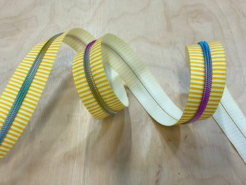 Yellow and Lemon Stripe with Rainbow Teeth Continuous Zipper Tape