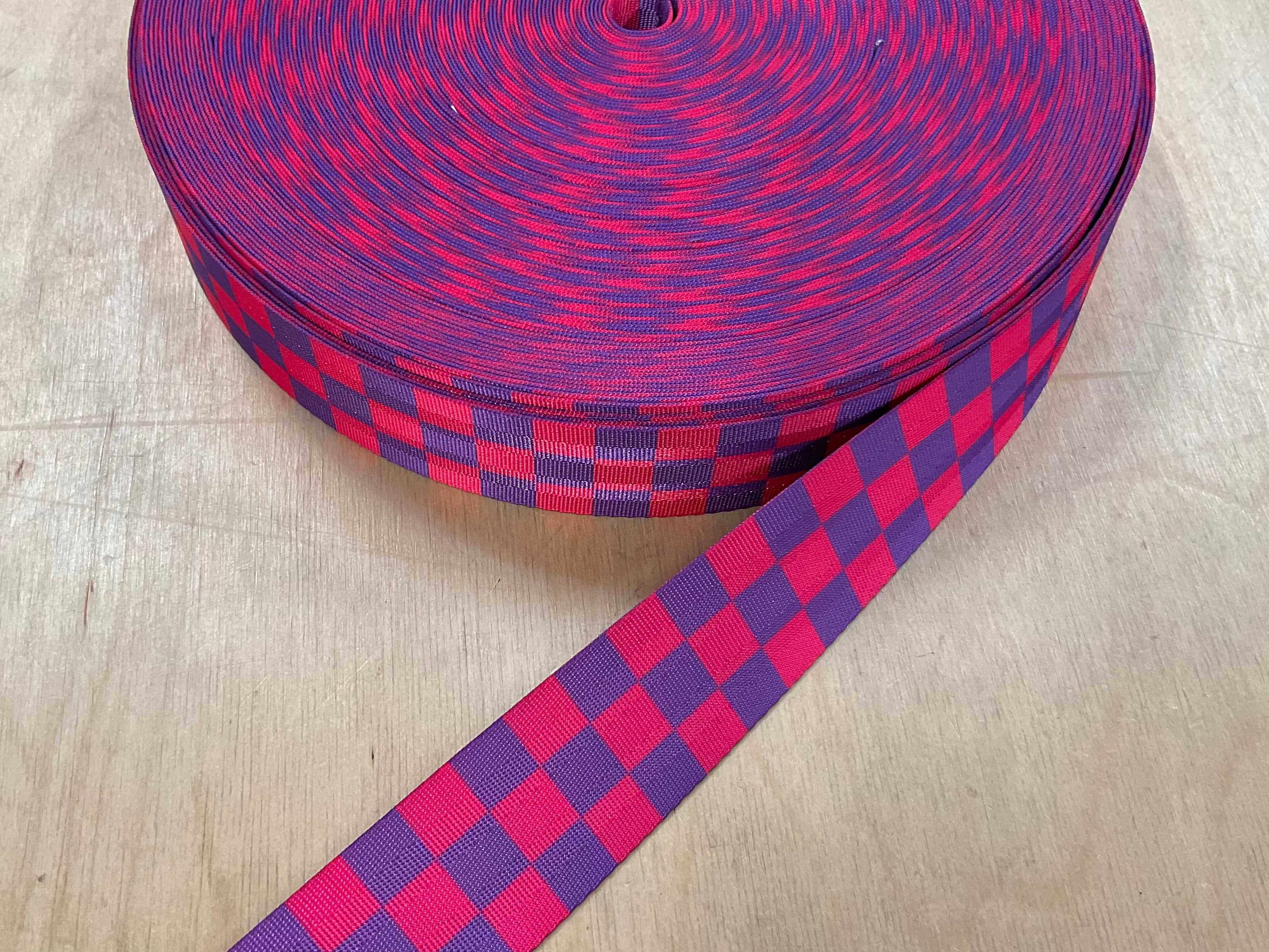 38mm Bright Pink and Purple Check Seatbelt Webbing Tape