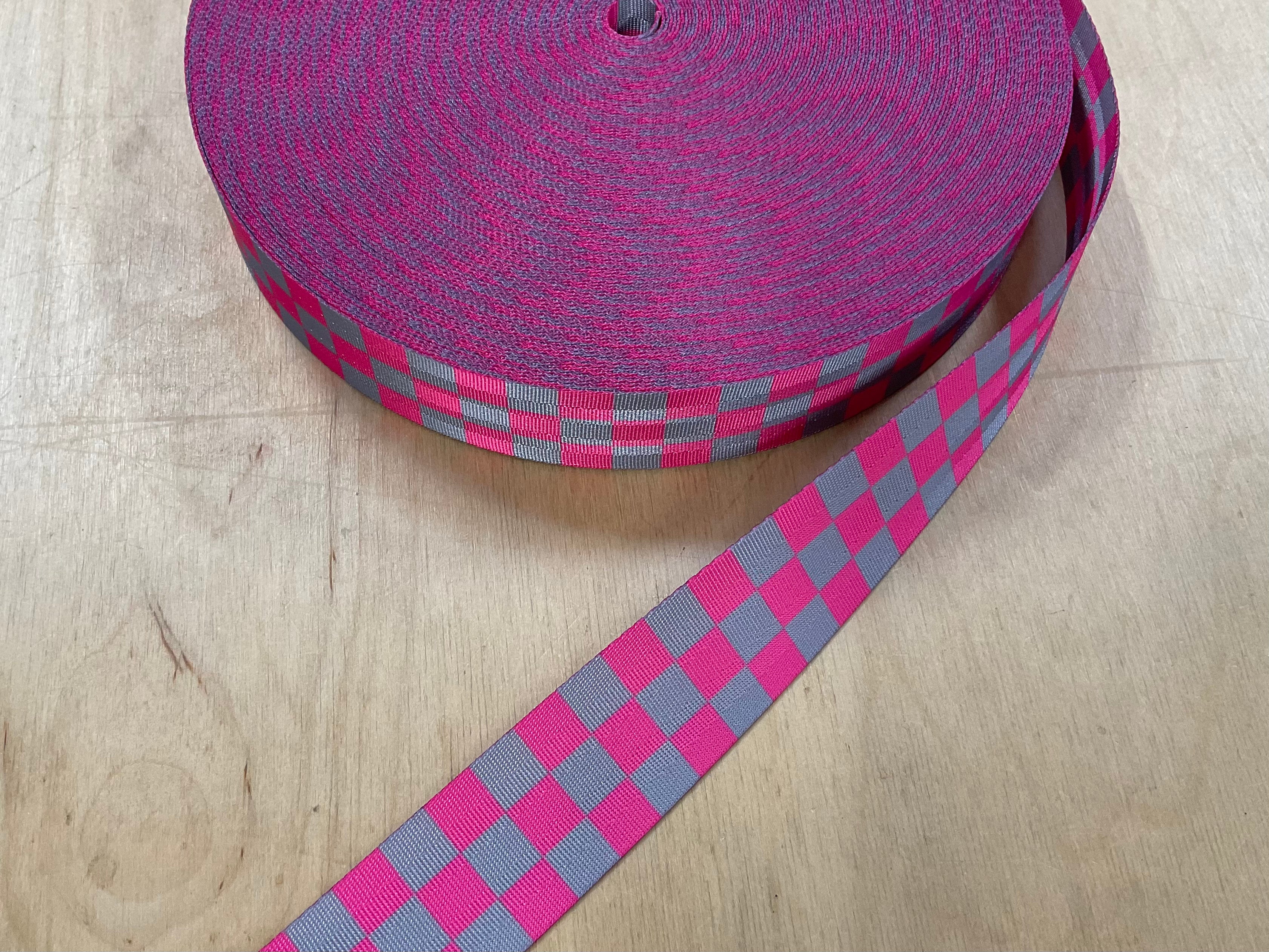 38mm Pink and Grey Check Seatbelt Webbing Tape