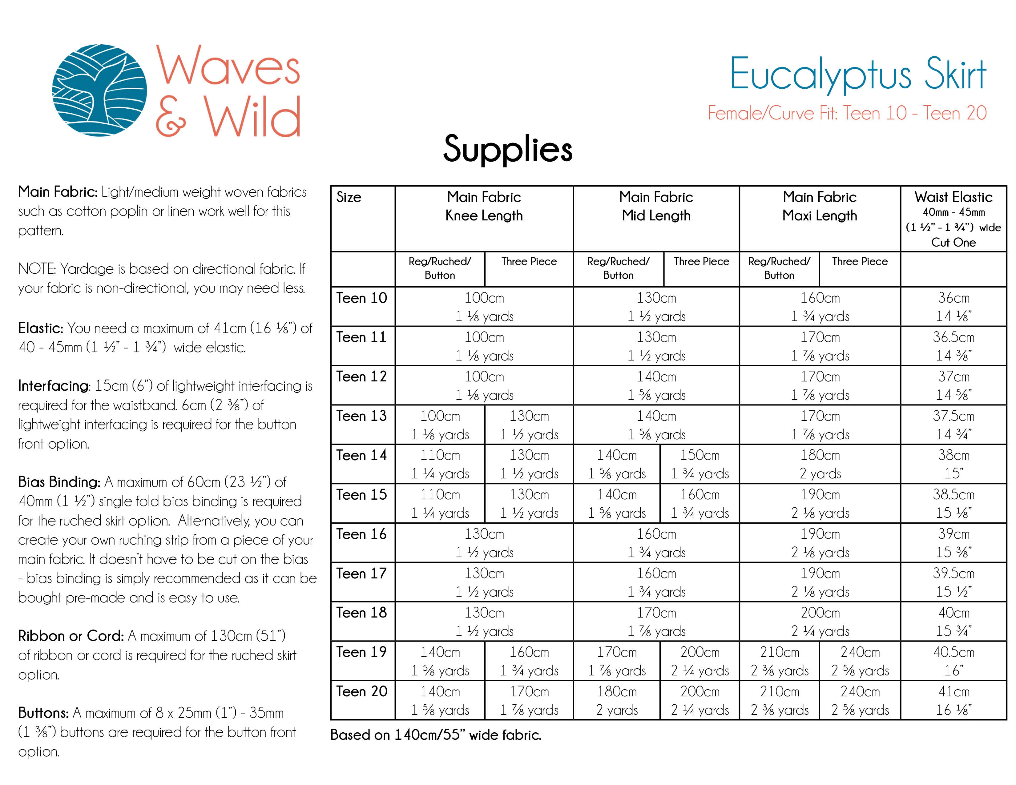 Eucalyptus Skirt Teen Waves and Wild Paper Pattern