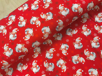 Snowmen on Red Cotton Jersey Fabric