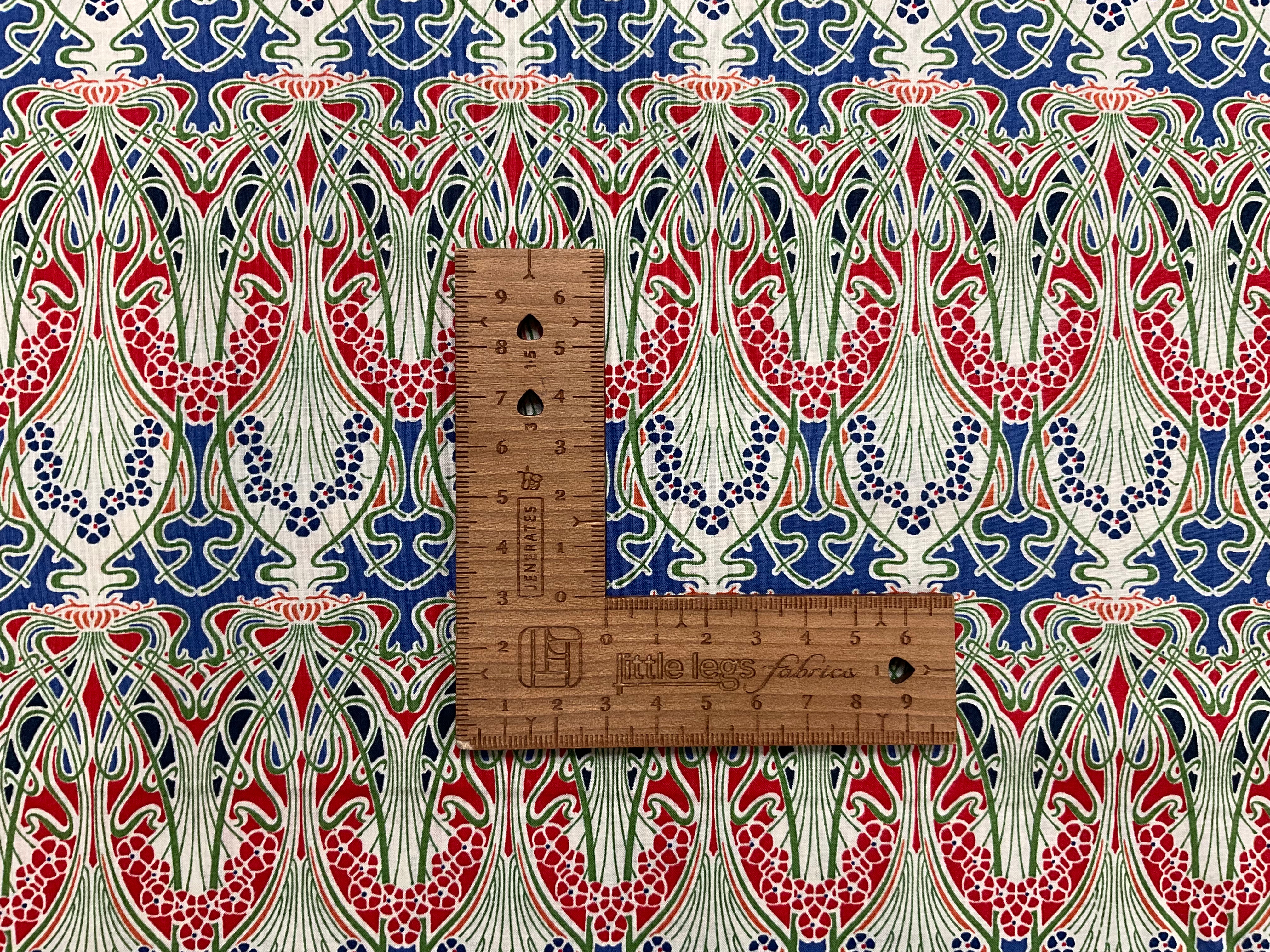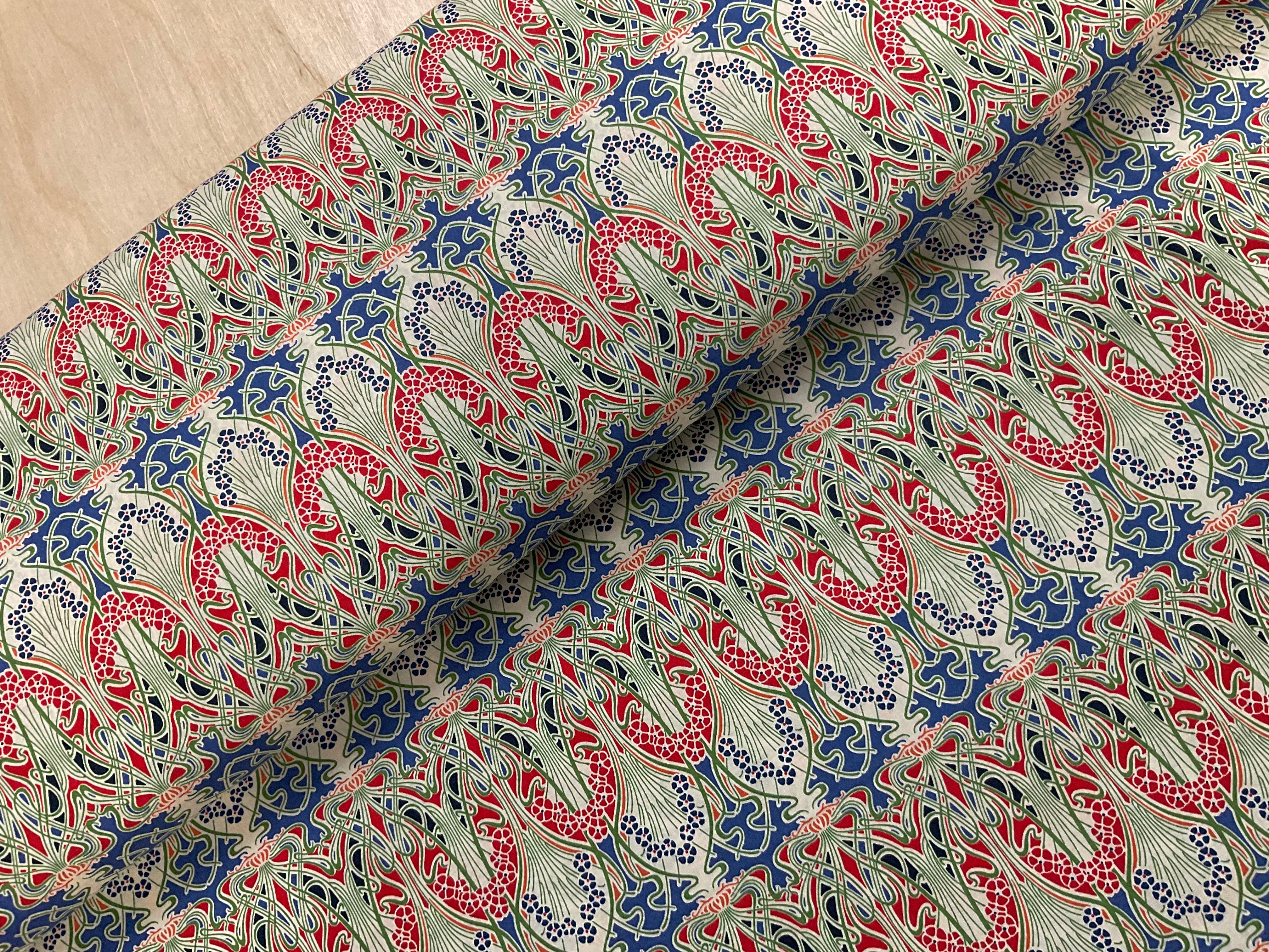 Red and Blue Art Nouveau Cotton Lawn