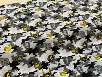 SALE - Army Badges on camouflage Cotton Poplin