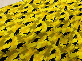 Sale Black Dinosaurs on Camouflage Cotton Poplin