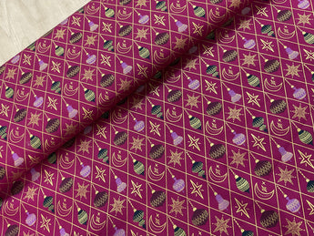 Christmas Baubles on Bright Plum with Gold Foil Cotton Poplin