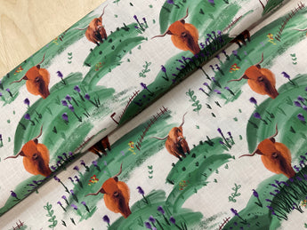 Highland Cow Flower Field Organic Cotton Poplin
