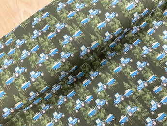 Forest Tractor Trail Cotton Jersey Fabric