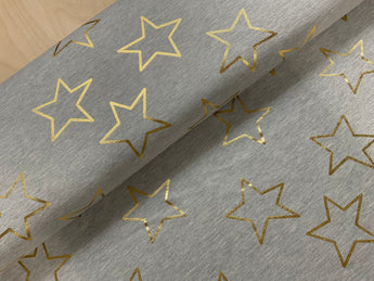Gold Foil Stars on Silver Grey Melange French Terry