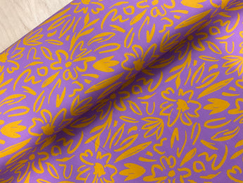 Sketched Flowers on Violet Cotton Canvas
