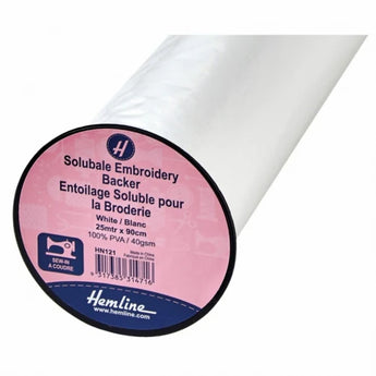 Embroidery backer to provide stability during sewing which then washes out after completion of the project. Ideal for machine embroidery and suitable on a wide variety of fabrics. Use cold water to wash out the backer.