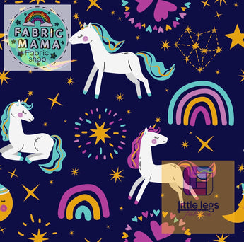 PRE ORDER Navy Unicorn by FABRIC MAMA Cotton Jersey Fabric - DUE IN STOCK MID MARCH