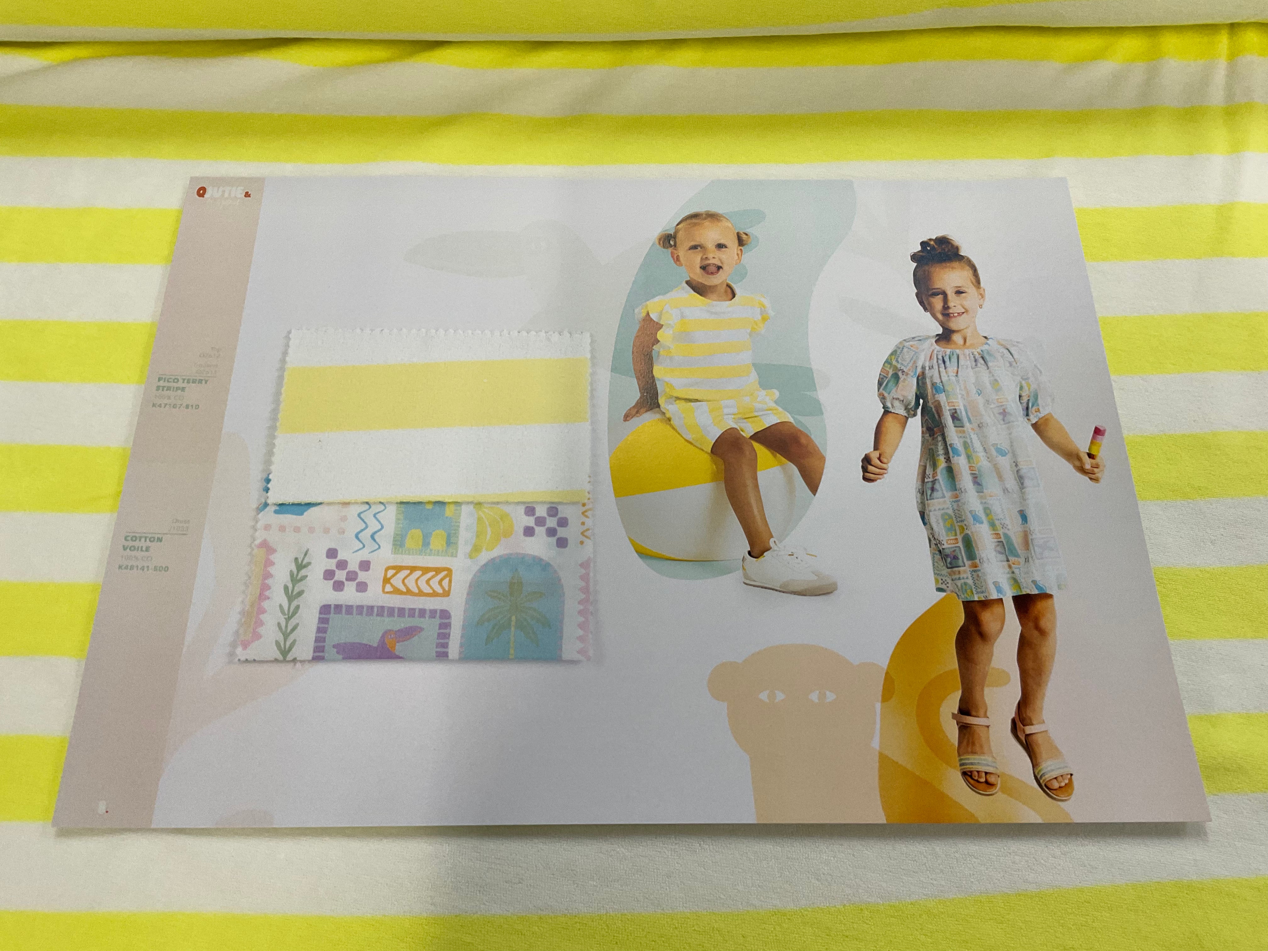 Lemon and White Stripe Textured Terry