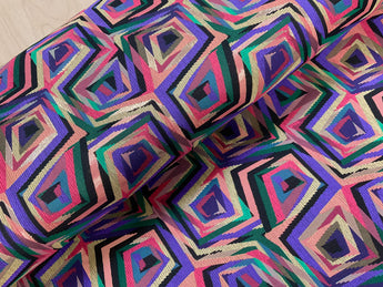 Stunning medium weight fabric with metallic gold thread throughout, great for dress making and even interiors.
