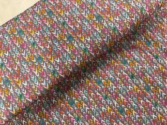 Colourful Herringbone on Taupe Needlecord / Corduroy