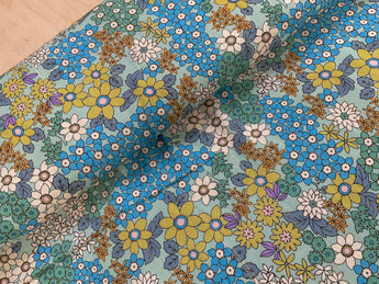 Metallic Thread Retro Blue Flowers Viscose