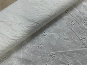 Spring Flowers Cotton Broderie Anglaise Fabric