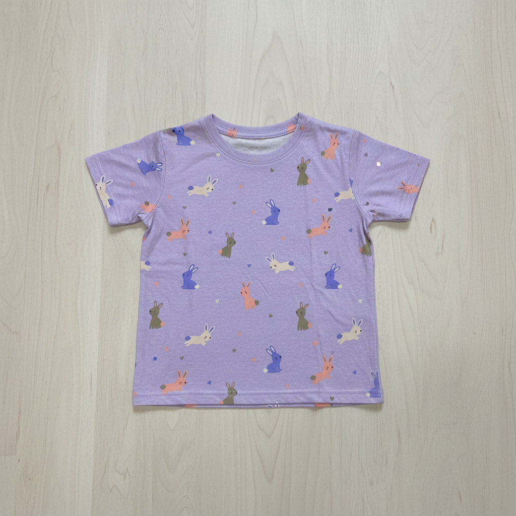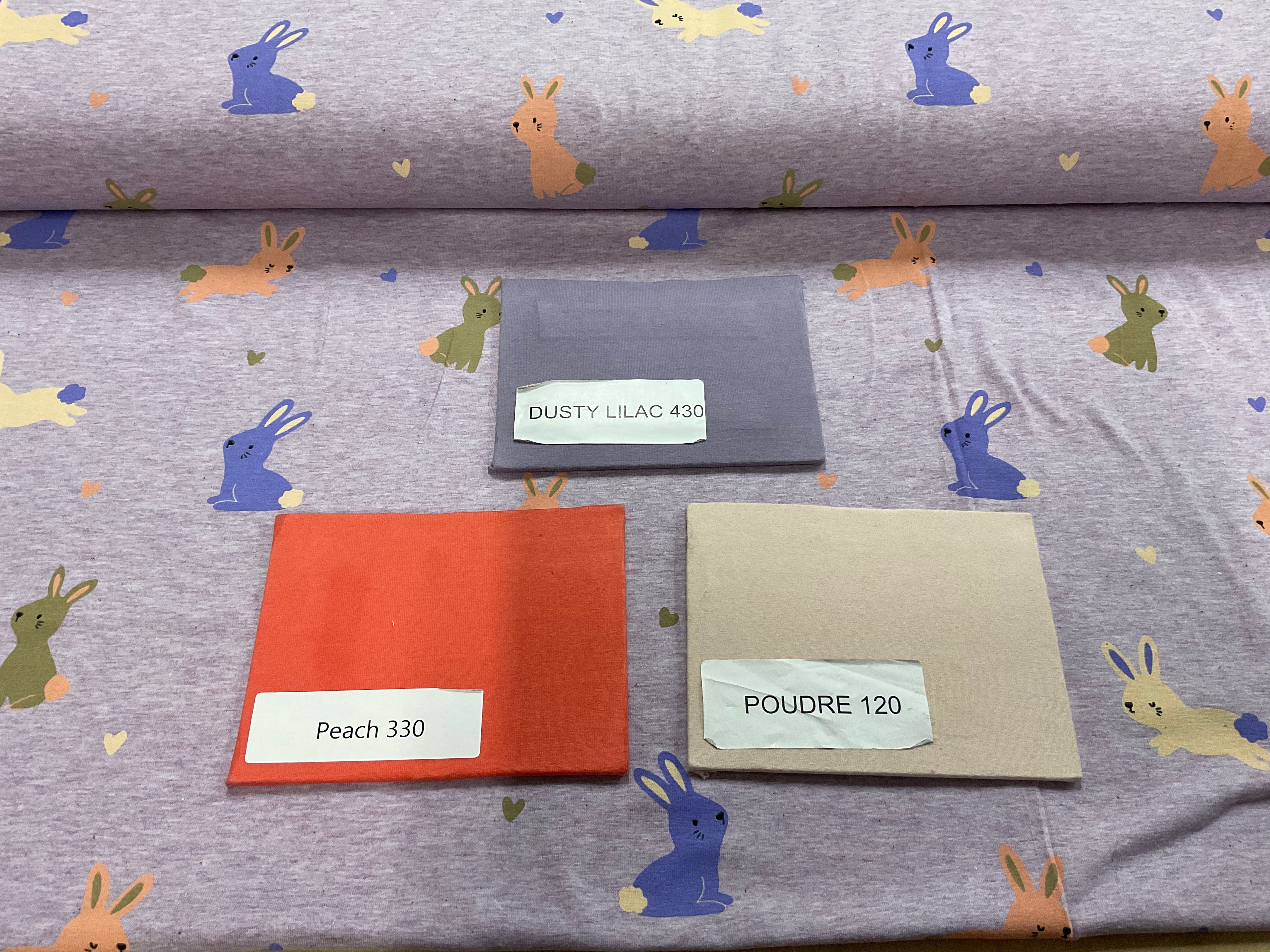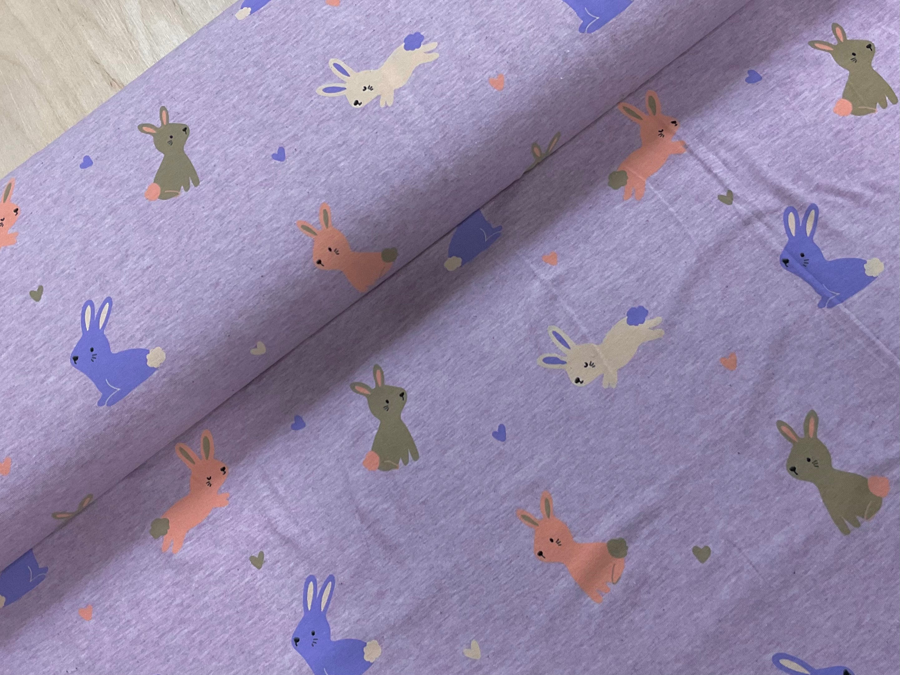 Bunnies on Lilac Melange Cotton Jersey Fabric