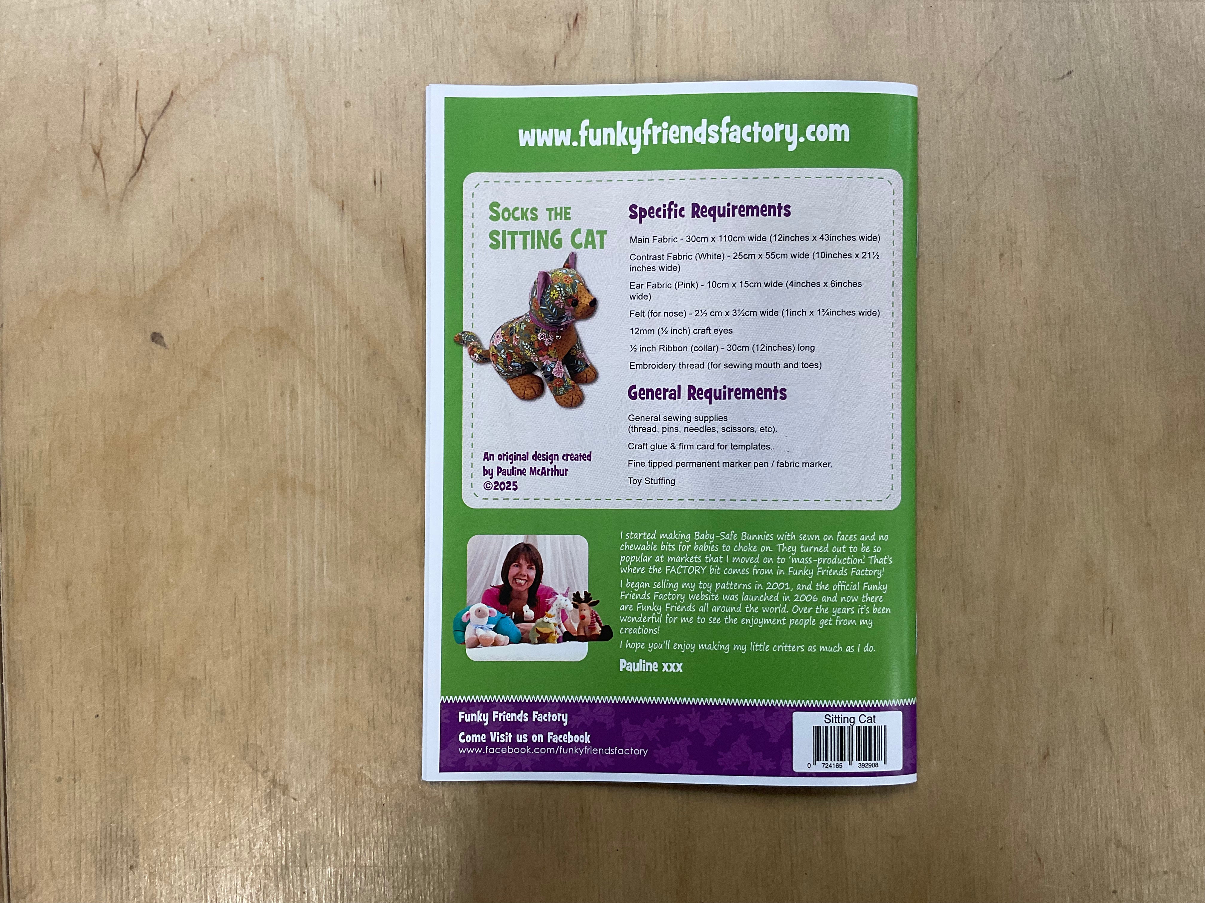 Socks the Sitting Cat Funky Friends Factory Soft Toy Pattern