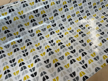 Grey/Yellow Semi Circle PVC vinyl Oil cloth