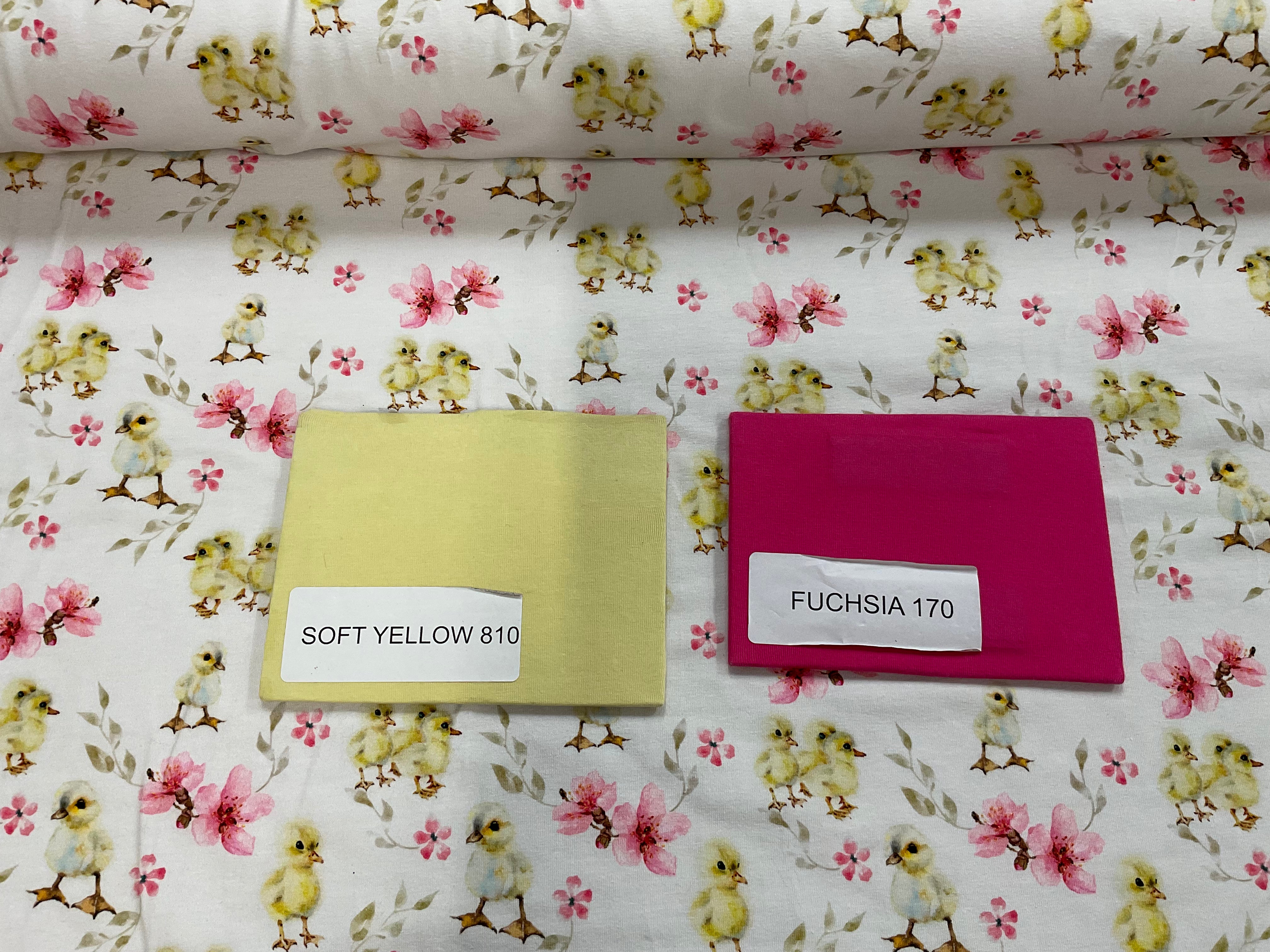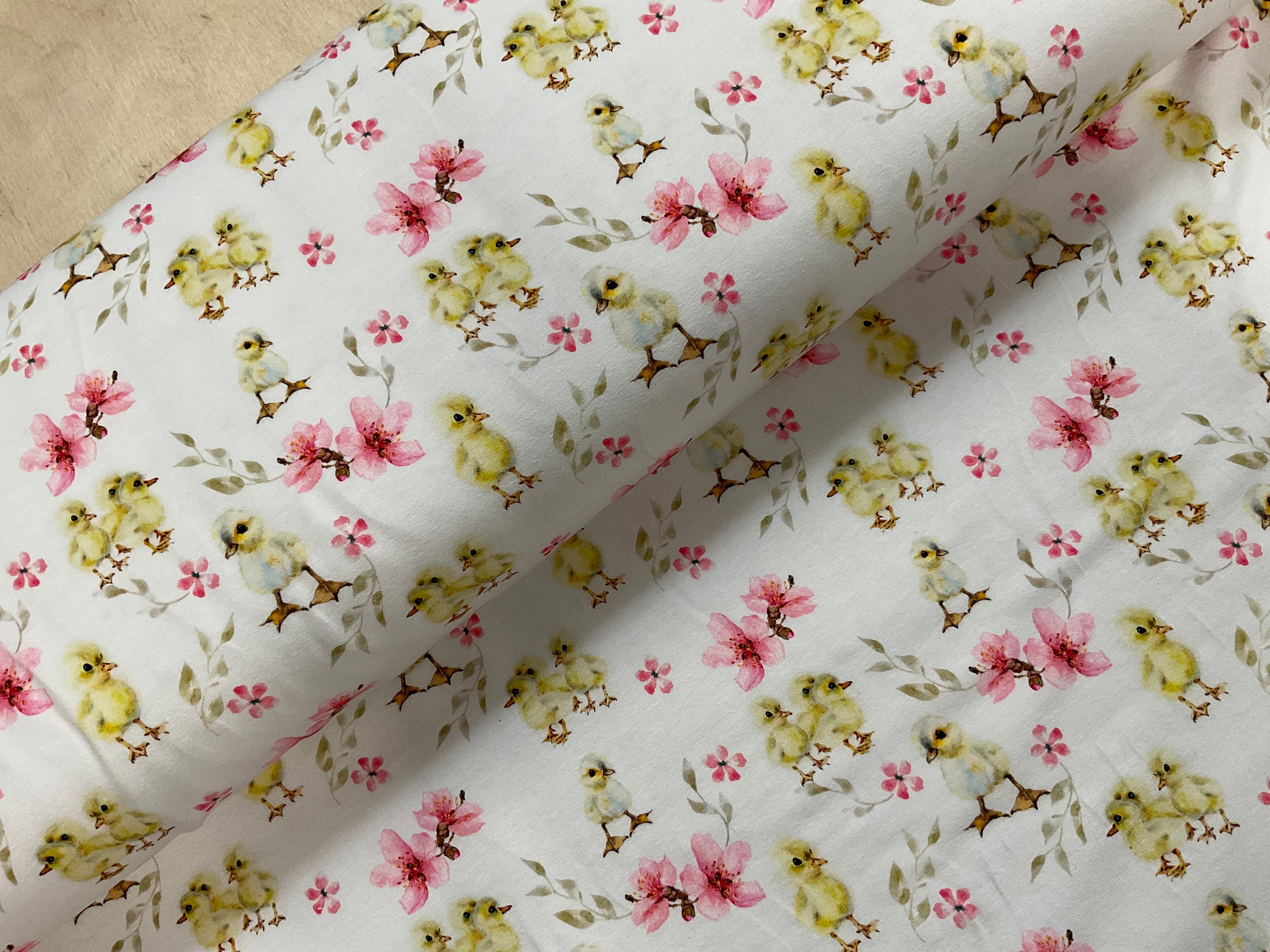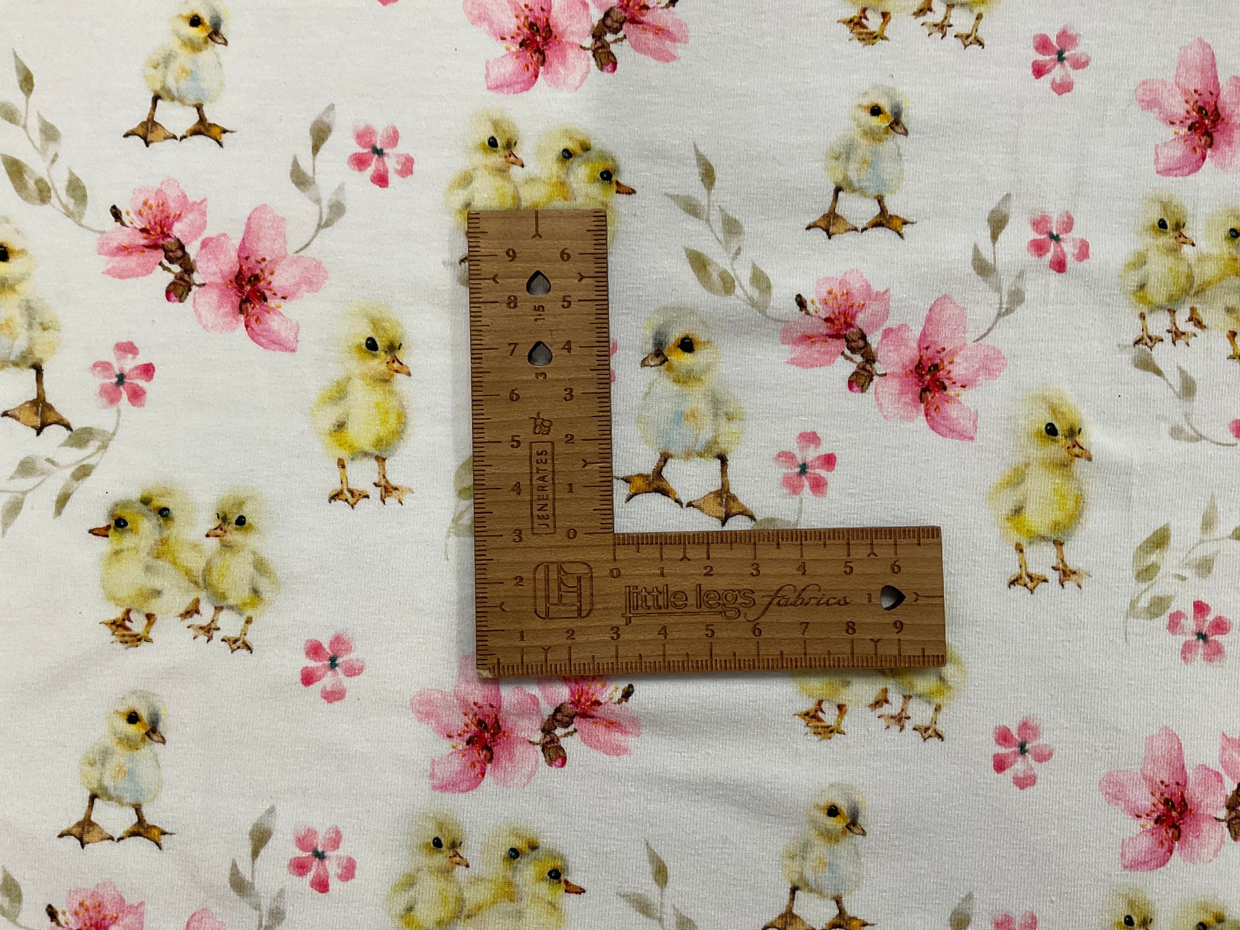 Chicks and Flowers Organic Cotton Jersey Fabric
