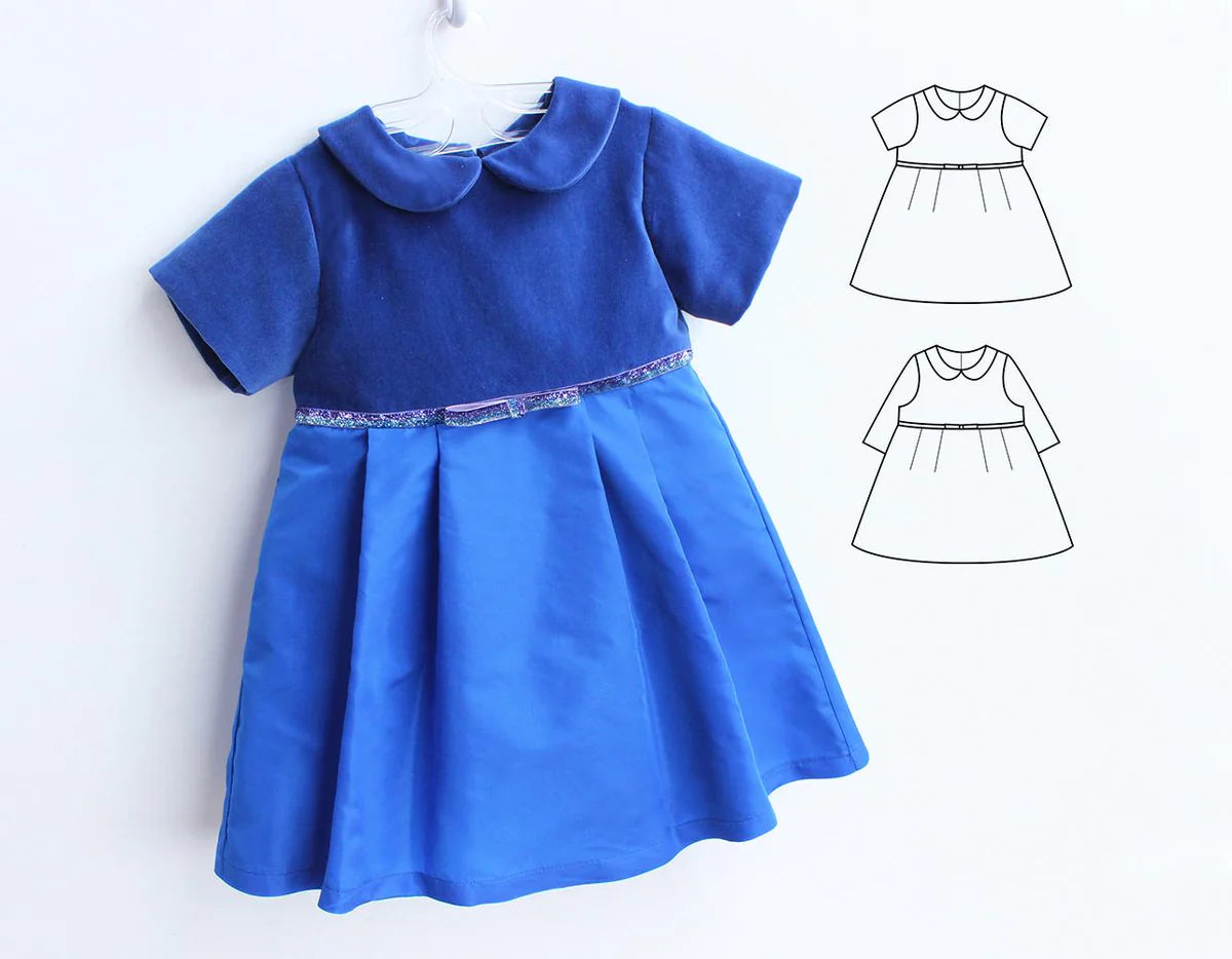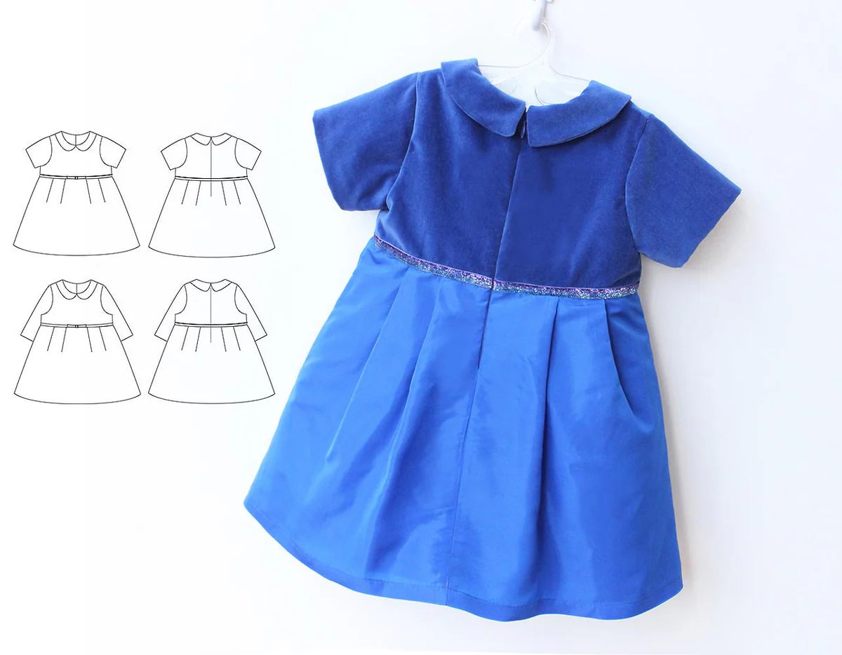 The Juliette Dress Pattern is a modern yet classic dress pattern designed for timeless appeal. Features long or short sleeves, Peter Pan collar, lined bodice and skirt, optionally lined short sleeves, pleated skirt, and an invisible zipper. This pattern is designed for the advanced seamstress or the adventurous sewist. Suitable for woven fabrics such as velvet, taffeta, fine cottons, and satin, but may be sewn with more casual fabrics for everyday wear! The Juliette Dress is a lovely choice for any occasion.