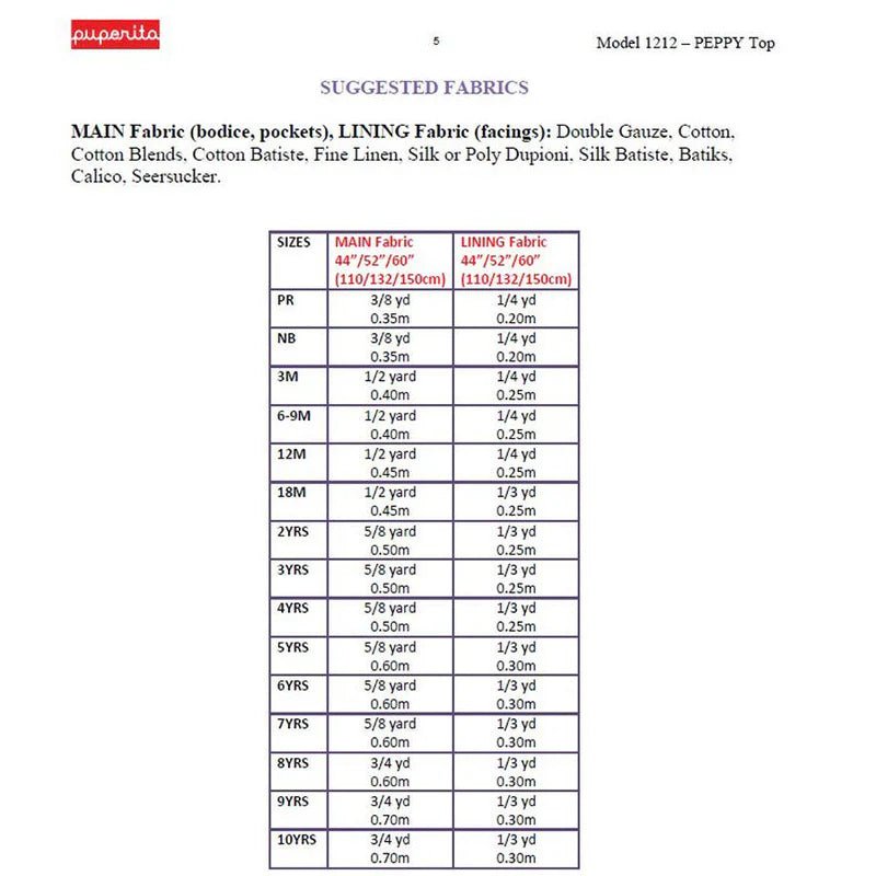 This is a paper pattern, you will not receive a PDF copy. If you wish to purchase a digital copy or additional patterns, please visit www.puperita.com. Puperita as the owner would not be liable for any errors due to printing and are not affiliated with the printing process. Please direct any queries to us - sales@littlelegsfabrics.co.uk
