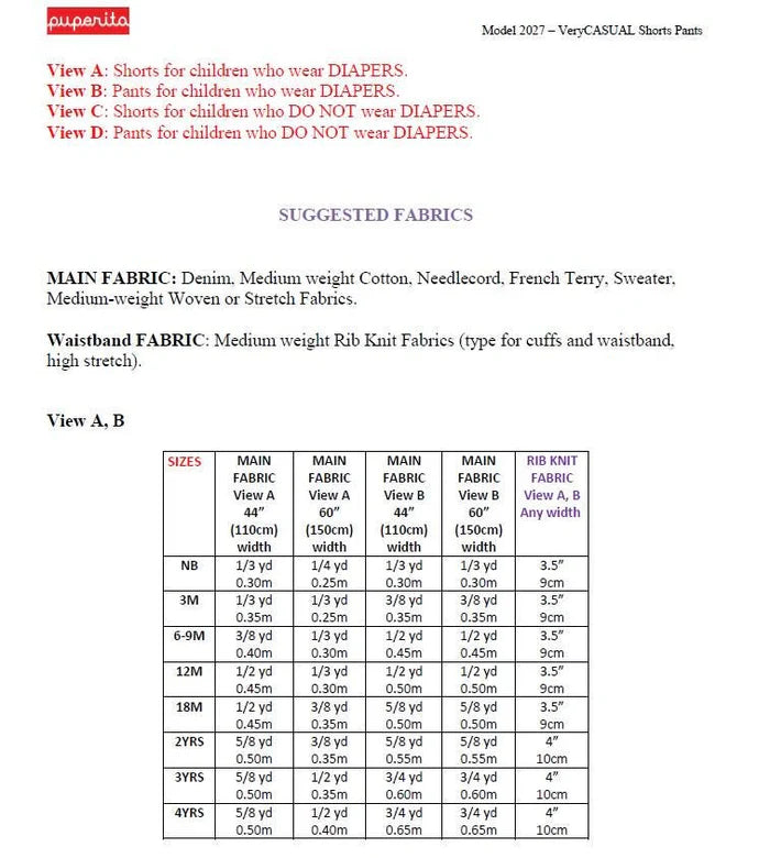 Very Casual Shorts and Pants PUPERITA Children's Paper Sewing Pattern