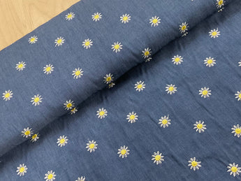 Light weight cotton chambray with sweet daisy embroideries