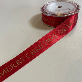 25mm Red Sparkle Merry Christmas Ribbon