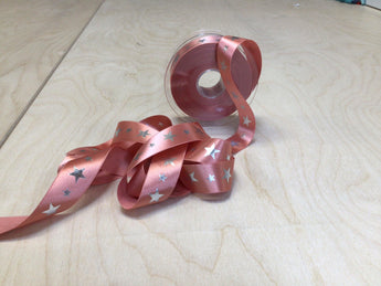 Rose Pink 25mm Silver Shiny Star Ribbon
