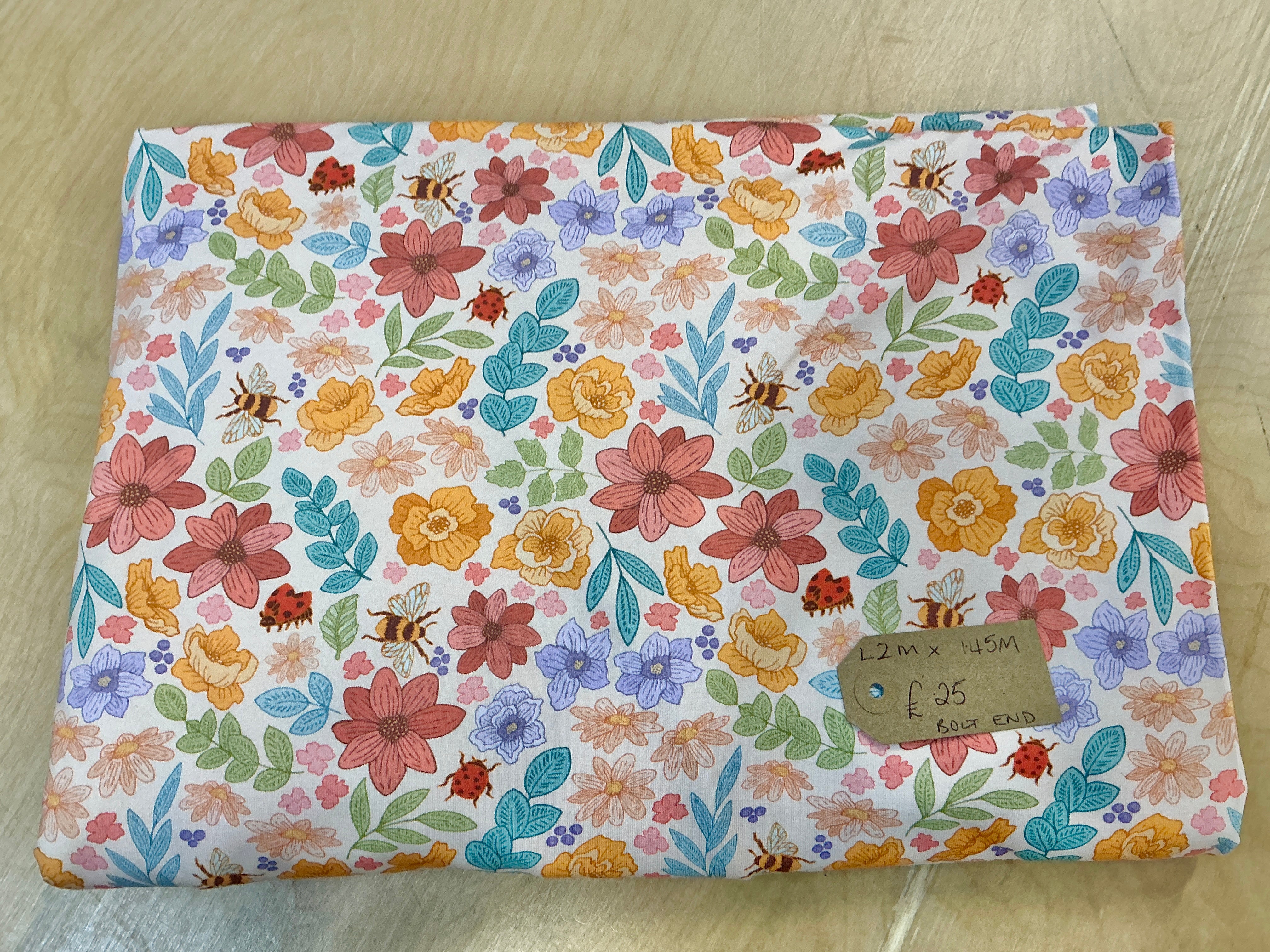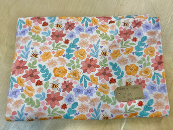 REMNANT - BOLT END L2M x W1.45M Bee and Ladybird Blossom Cotton Jersey