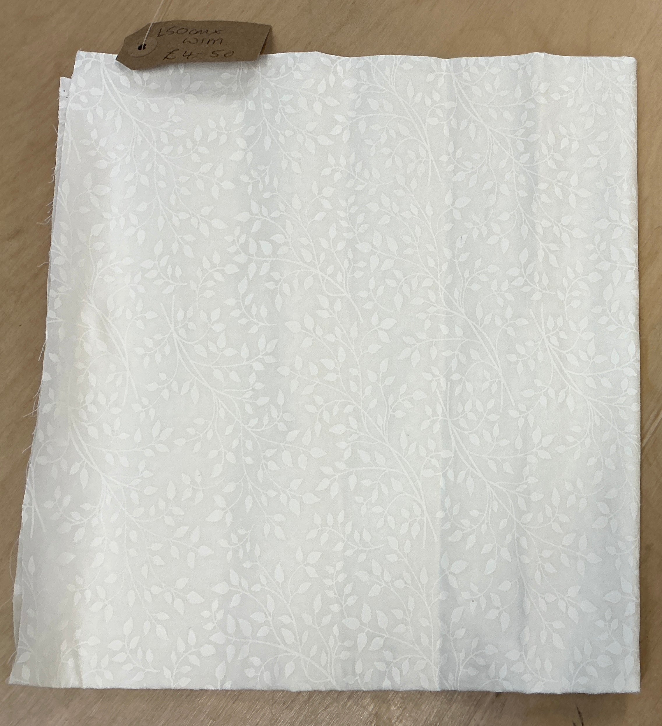REMNANT - L50cm x W1M Leaves on Ivory Cotton