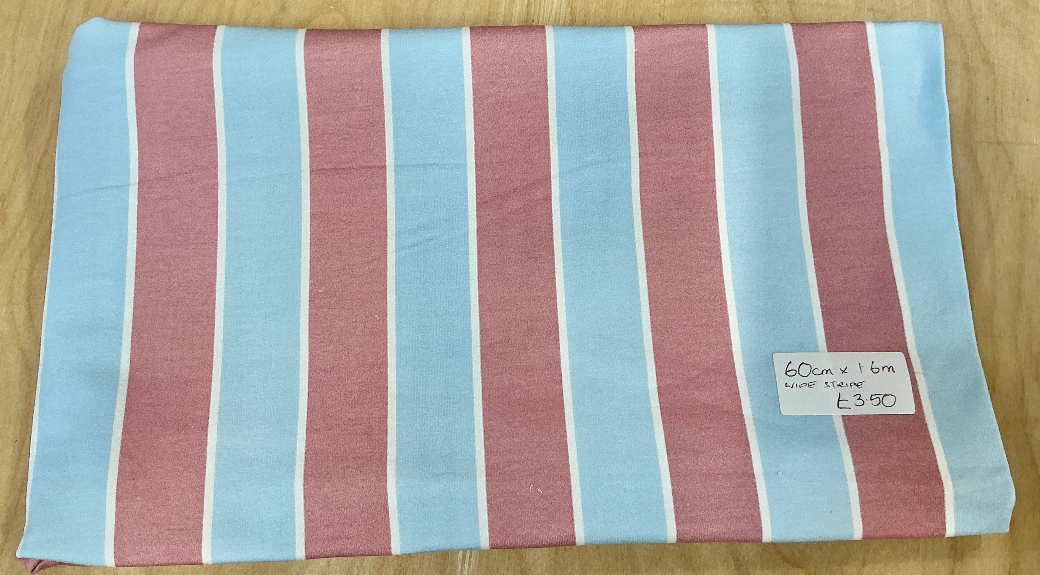 REMNANT - L60cm x W1.6M Pink and Blue Wide Stripe French Terry