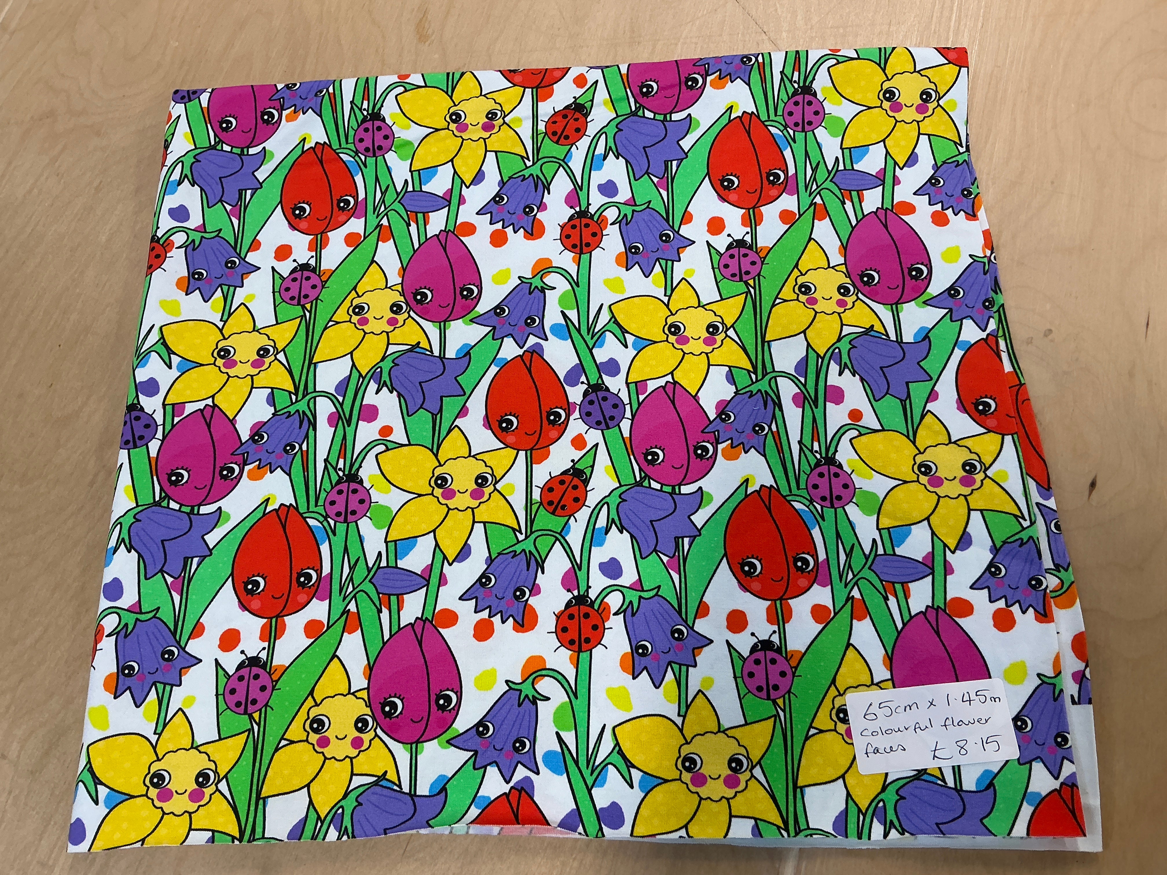REMNANT - L65cm x W1.45M Colourful Flower Faces Jersey
