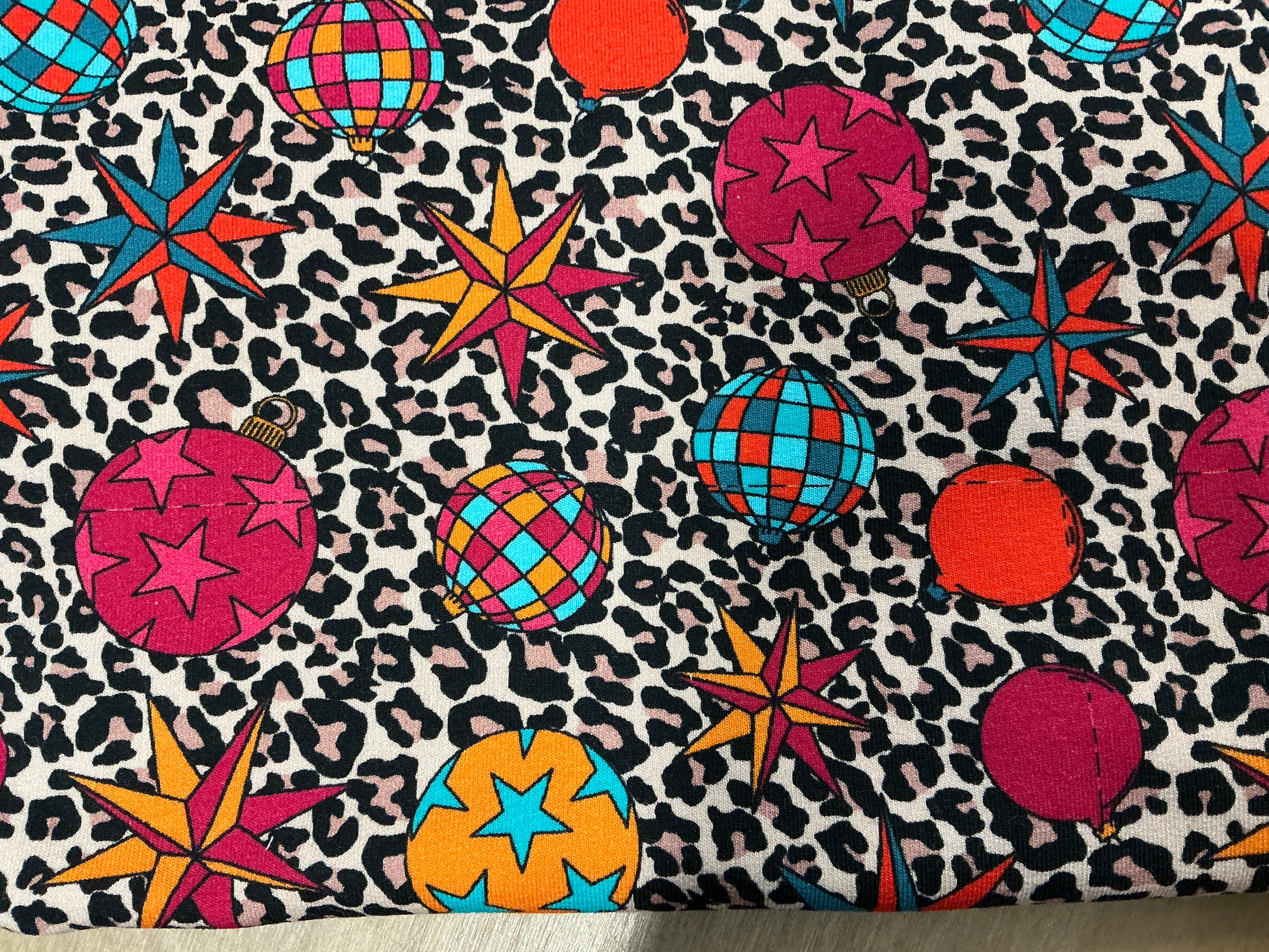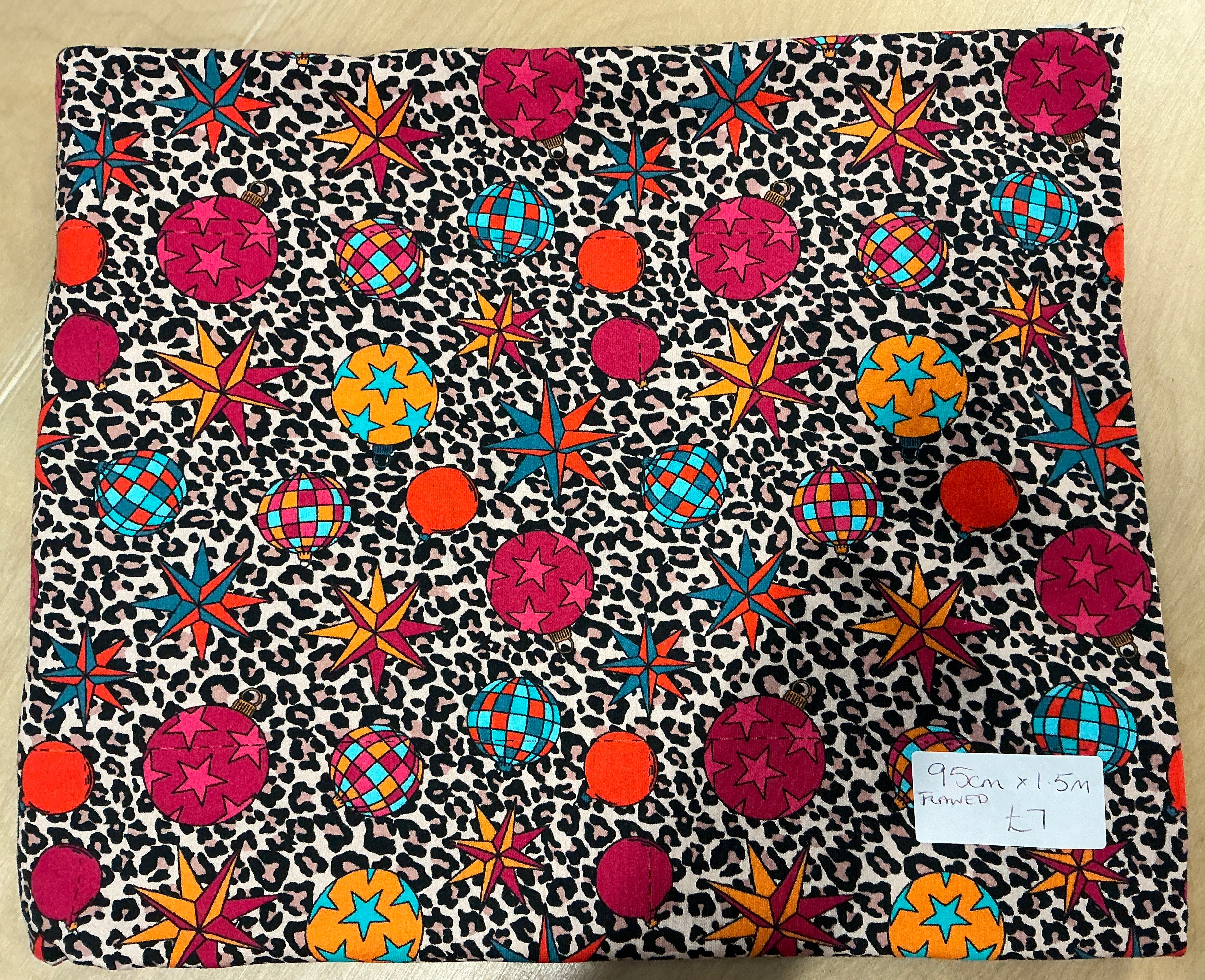 REMNANT - (FLAWED) L95cm x W1.5M Bright Baubles on Leopard French Terry