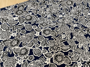 Black Flowers on Blue Viscose Jersey