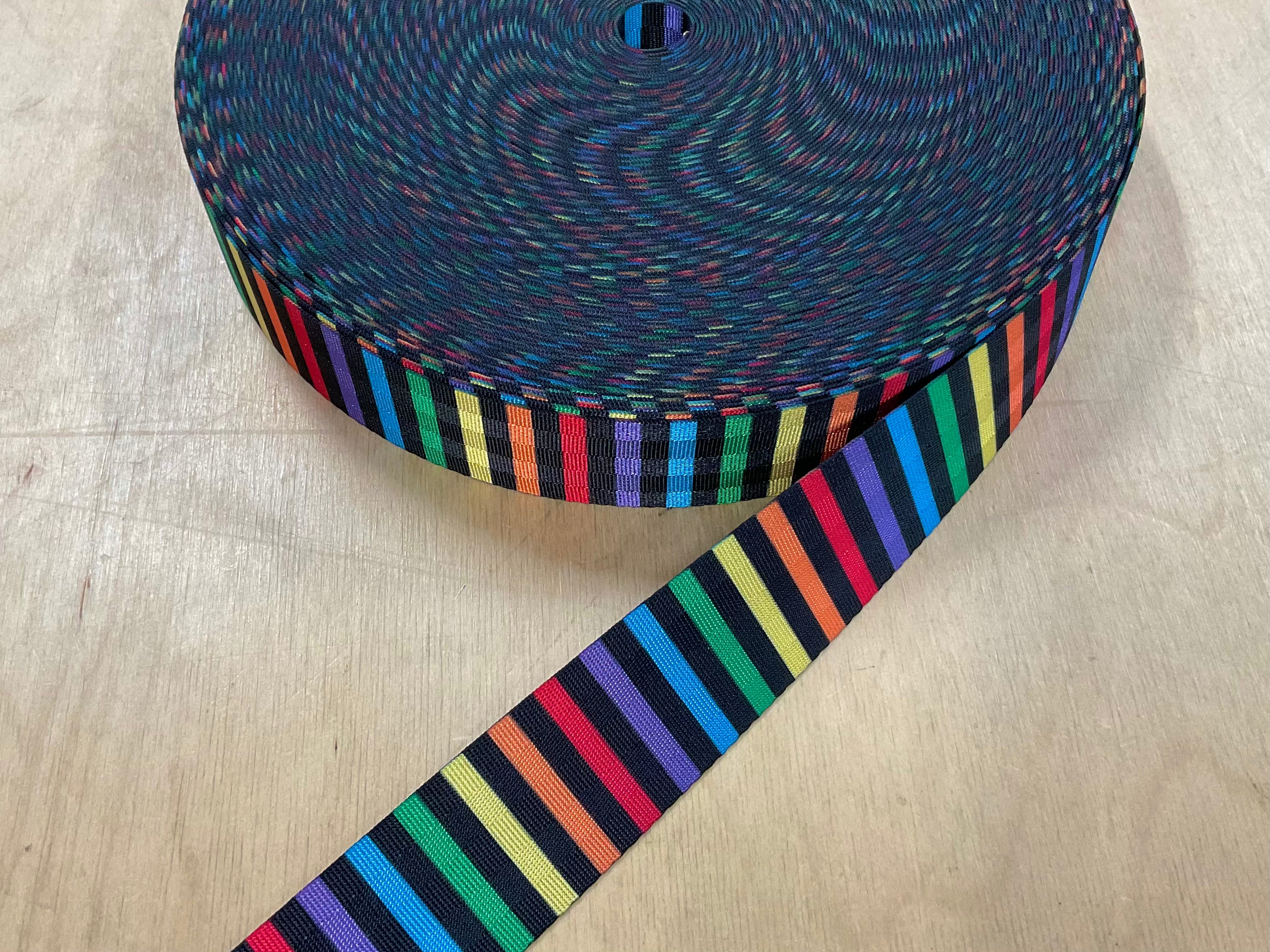 38mm Rainbow and Black Stripe Seatbelt Webbing Tape