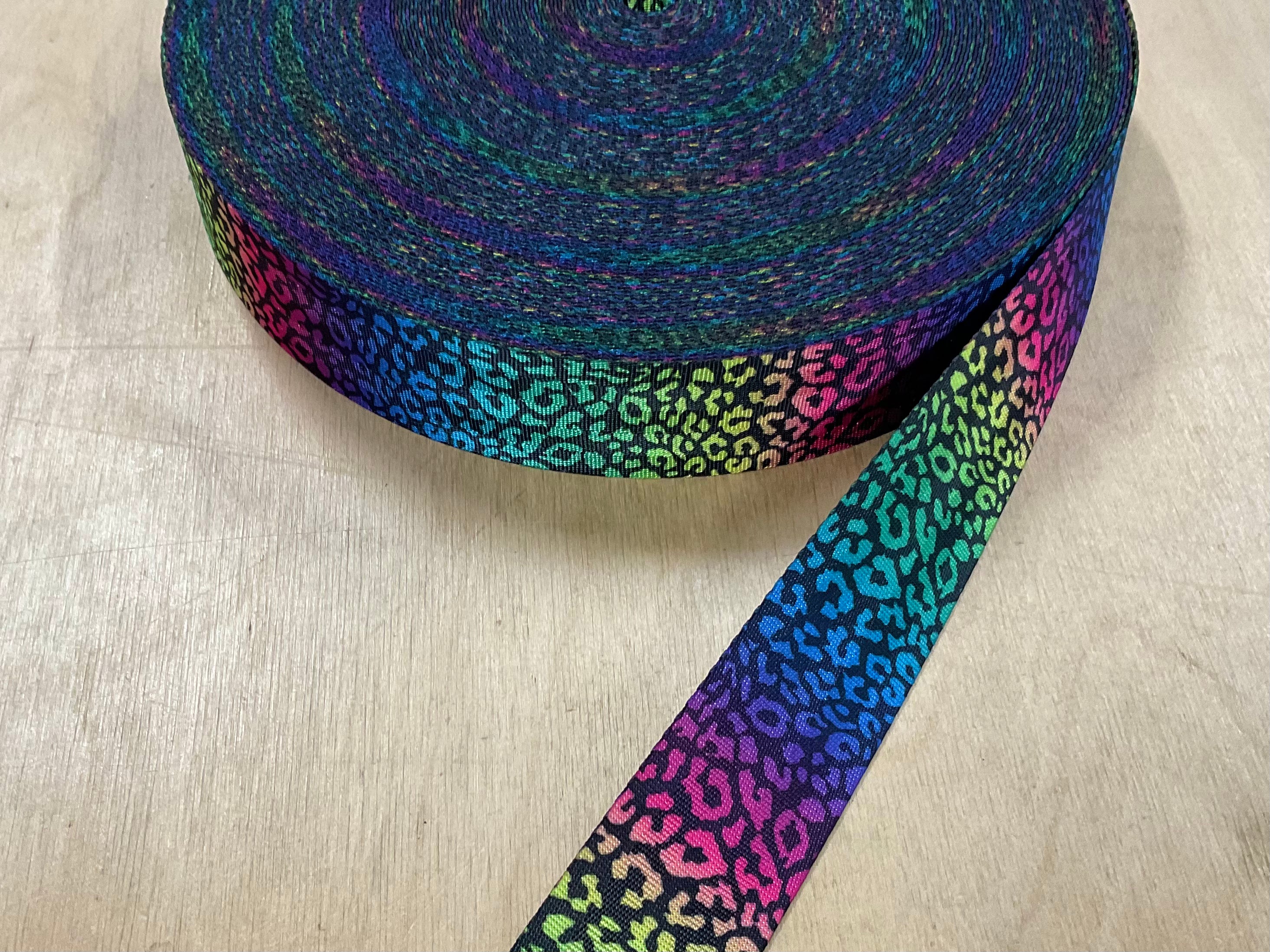 38mm Rainbow Leopard on Black Webbing Tape