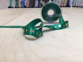 Bottle Green 25mm Gold Shiny Star Ribbon