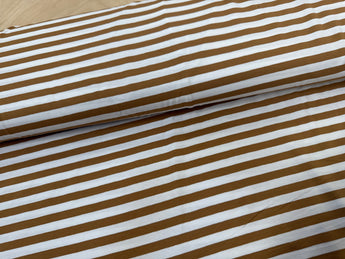 Caramel and White Yarn Dyed 1cm stripes Cotton Jersey