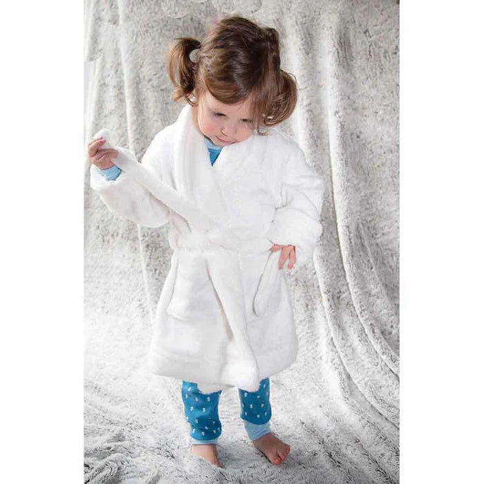 The Hugs and Cuddles Robe Pattern is a classic robe and dressing gown pattern for children. Features include a simple roll/shawl collar, long sleeves with turned back cuffs, lined patch pockets, and belt which meets US/European safety standards. The bodice back is partially lined for comfort and style. Ideal for fleece, terry, cotton sponge, and waffle fabrics. Jersey fabrics such as interlock may be used for a lightweight robe.