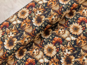 Kittens and Autumn Blossoms Cotton Jersey