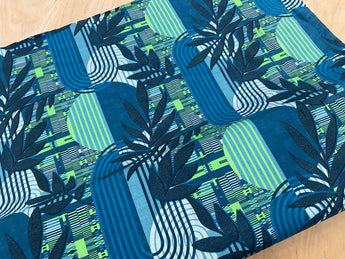 Large Scale Shapes and Leaves Cotton Jersey Fabric