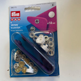 Jersey 10mm snap fasteners starter set, includes 10 sets.